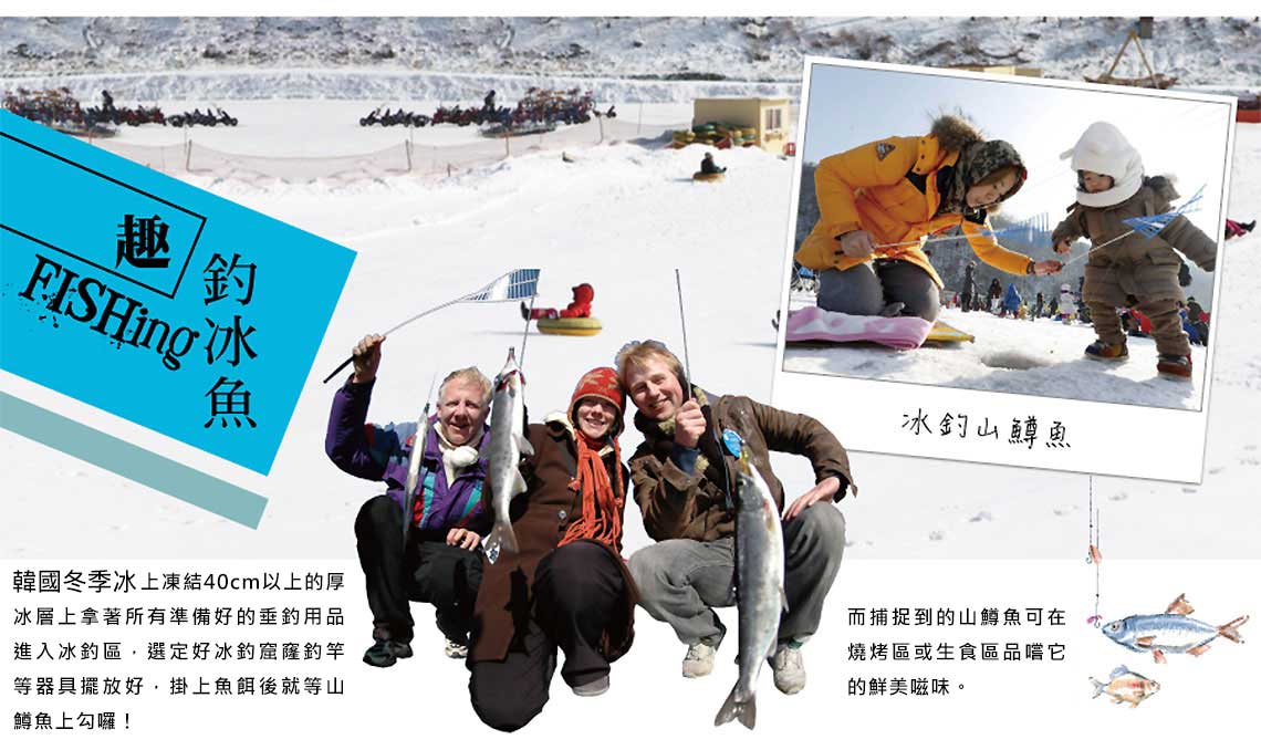 註:如因安全因素,冰釣場未開放時行程則改樂天世界(含門票+全日券)