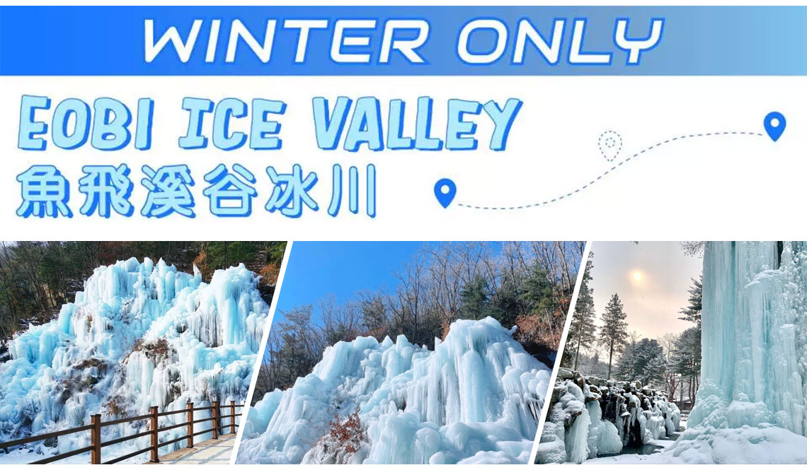 【魚飛溪谷冰川】涼爽的溪谷就是魚飛溪谷。作爲京畿道清淨溪谷的一環,沿溪谷設置了甲板路,冬季時從甲板橋和溪谷中央像噴泉一樣灑水。