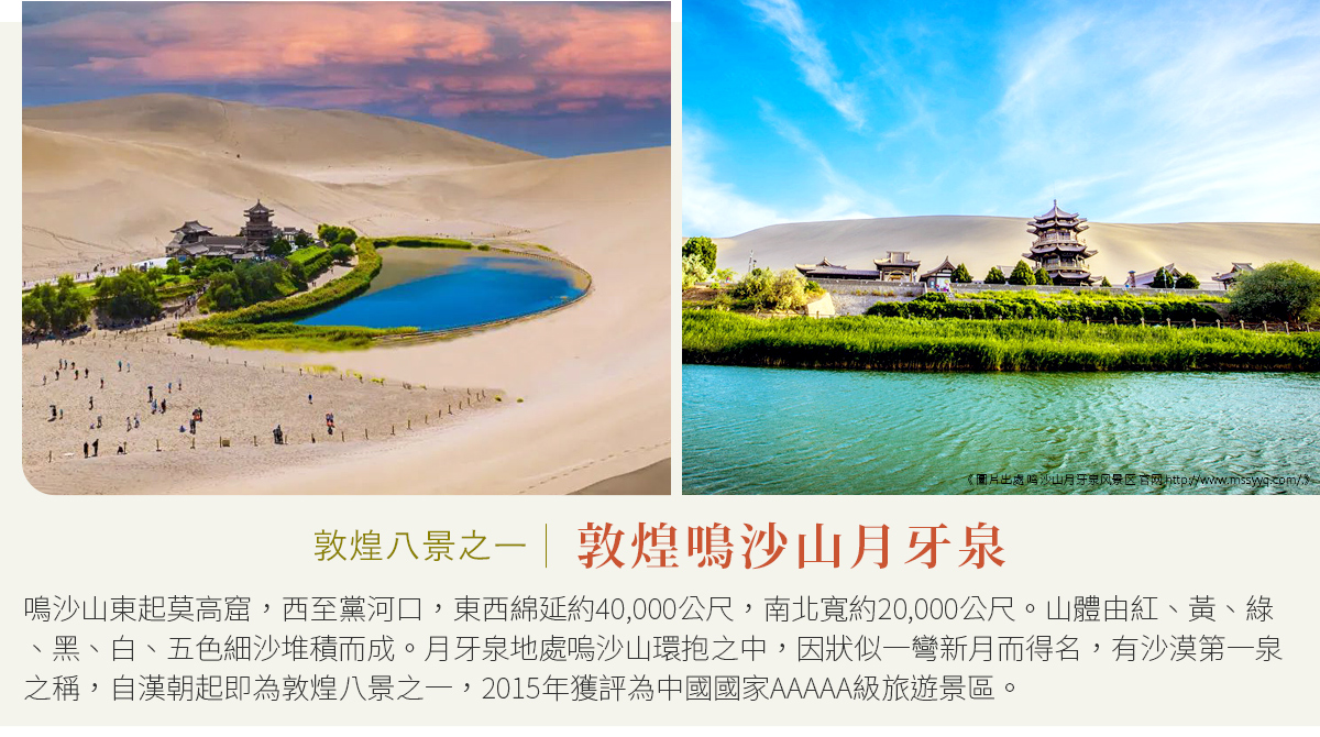 ★這裡沙山與泉水共處,歷來以「沙漠奇觀」著稱於世,是敦煌的重要景點之一。