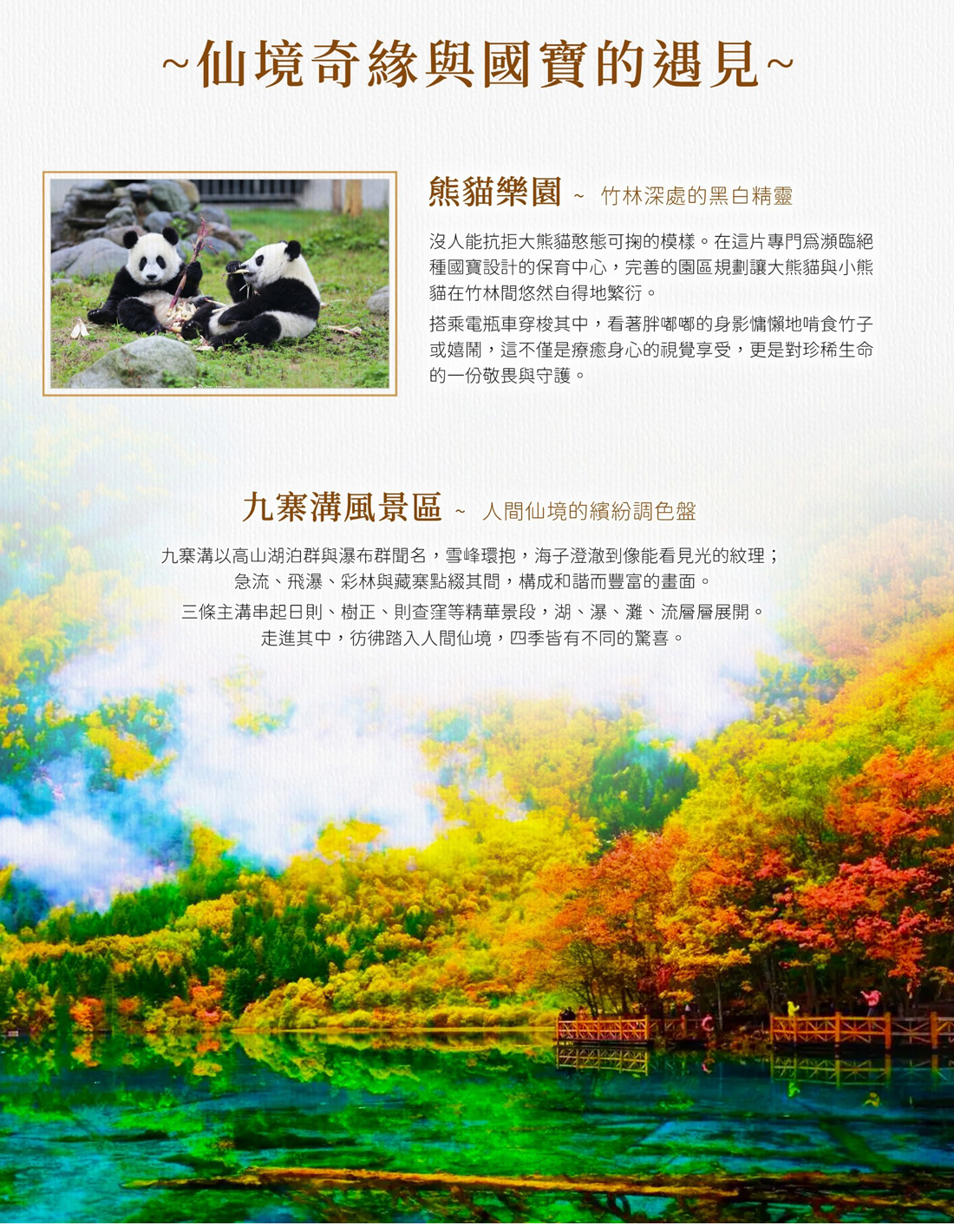 ※九寨溝景區具體遊覽區域請聽從景區隨車講解員安排。