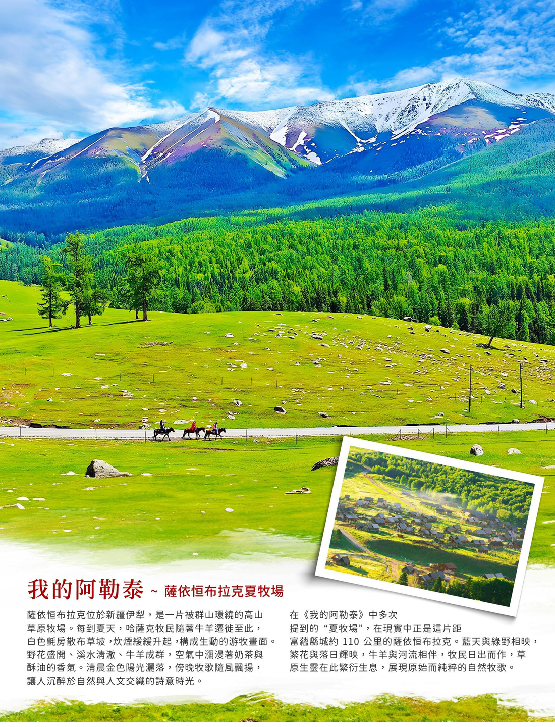 新疆素有攝影者的天堂、千里畫廊、特殊地質風貌和迷人的多民族風采,新疆的美,難以言喻。新疆很多種玩法,但多以南、北區格,北疆有巴音布魯克、那拉提的翠綠草原,大草原上牛羊成群,在喀納斯湖、賽里木湖有彩色繽紛的野花海,峽谷風光,造訪世界最低地土魯番-西遊記中的火焰山,在維吾爾農家採葡萄品甜瓜...新疆!人生必遊,讓我們就從北疆留下美好足跡。