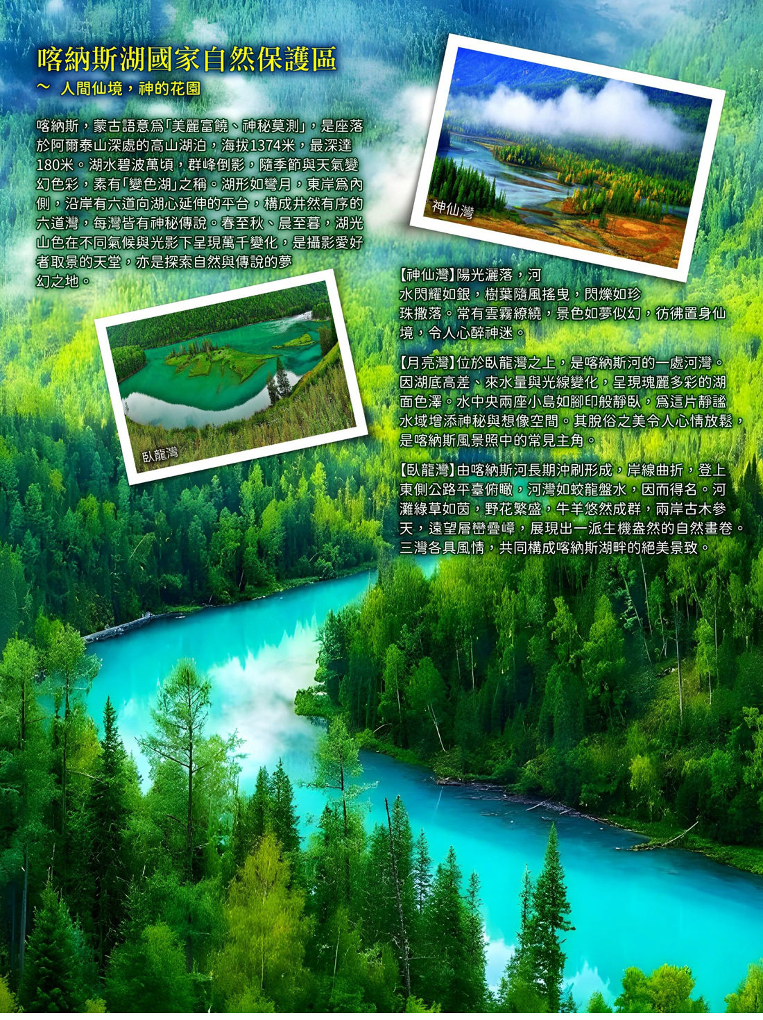★【喀納斯湖國家自然保護區】人間仙境、東方瑞士&阿爾泰山最美的高山湖泊-臥龍灣、月亮灣、神仙灣以及鴨澤湖等經典美景觀賞。