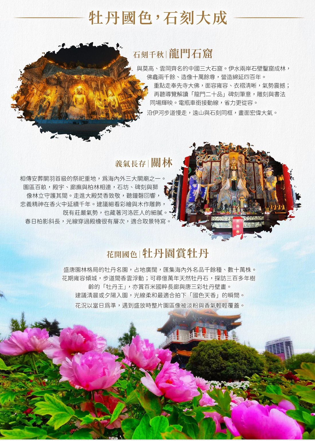 洛陽【牡丹園賞牡丹、龍門石窟(含導覽耳機+電瓶車)、關林】 / 輝縣
